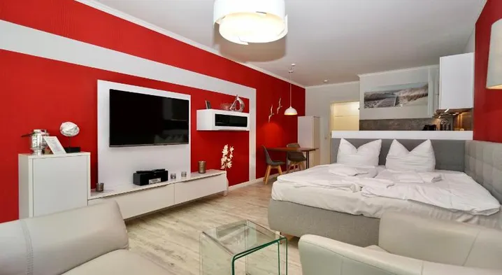 Luxury spa apartment with outdoor pool, private beach access, and individually decorated rooms in Kuehlungsborn.