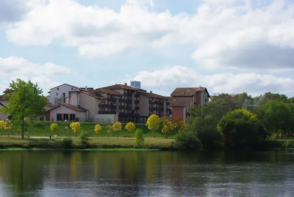 Stay in the heart of Dax with modern rooms featuring kitchenettes and private balconies, steps from local attractions.