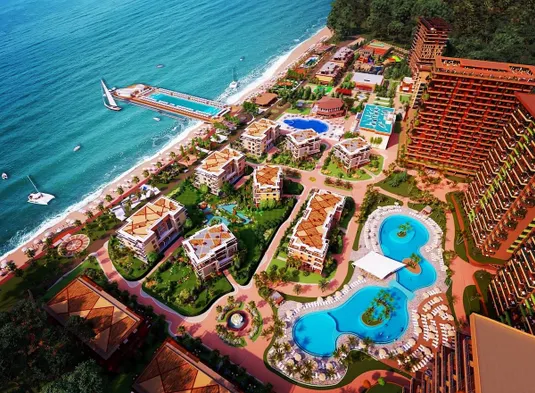 Luxury resort with spa, 2 outdoor swimming pools, private beach, and international dining in Kobuleti, Georgia.