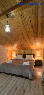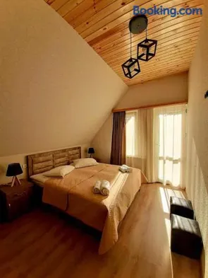 Cozy cottage in Kazbegi with private balconies, garden views, and outdoor fireplace for a relaxing getaway.