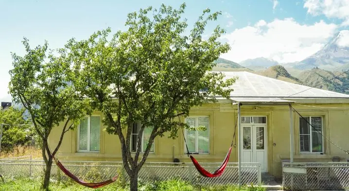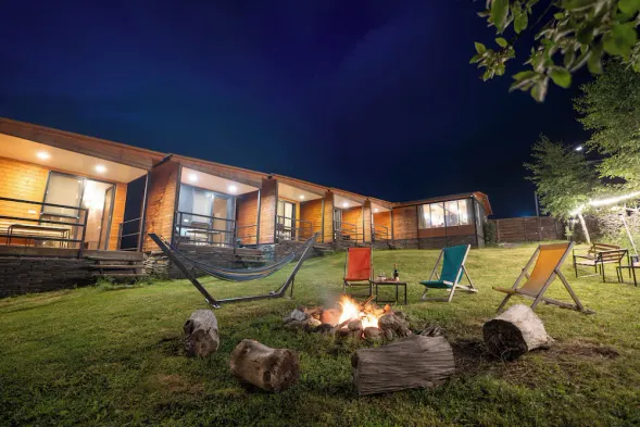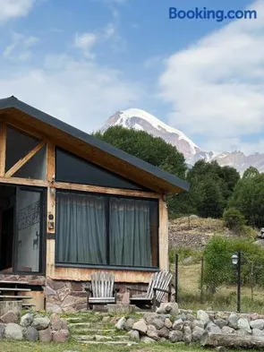 Cozy cottage in Kazbegi with private balconies, garden views, and outdoor fireplace for a relaxing getaway.