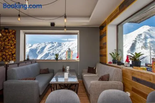 Ski-in/ski-out resort with indoor pool, restaurant, and family-friendly amenities in the mountains of Kazbegi.