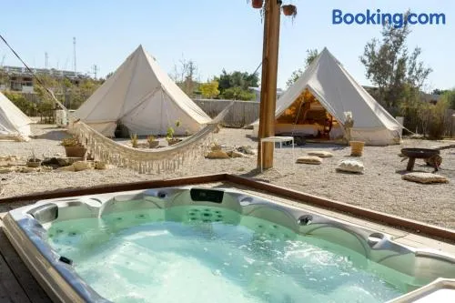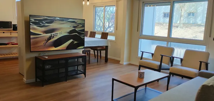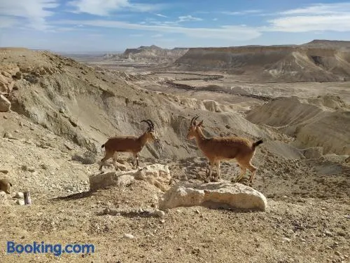 Luxury apartment with hot tub, restaurant, and free parking in Mitzpe Ramon, perfect for families and outdoor enthusiasts.