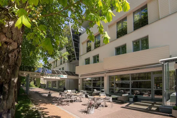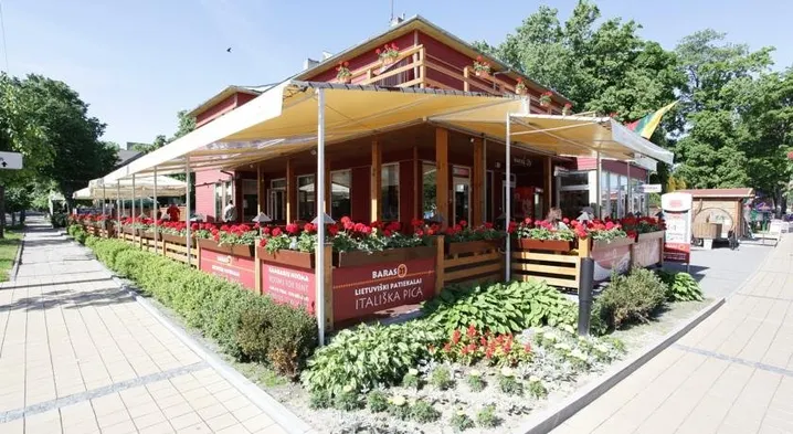 Luxury hotel with spa, two indoor pools, and tennis courts, located near Palanga Beach.