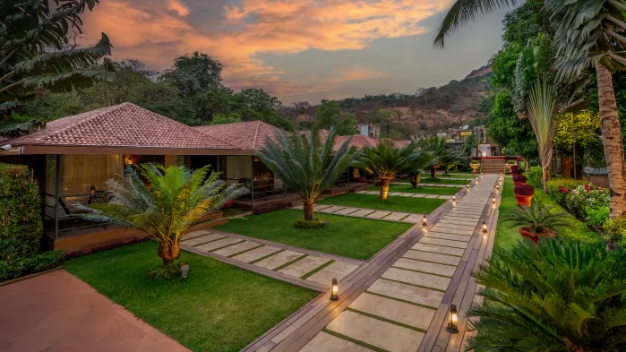 Relax in a family-friendly hotel featuring a spa, indoor pool, and on-site dining in Karjat, Maharashtra.