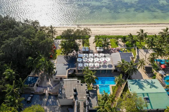 Beachfront hotel with private beach, outdoor pool, full-service spa, and business center in Mombasa.