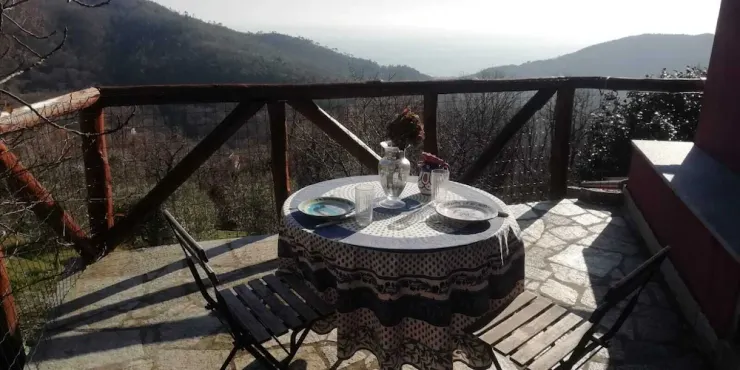 Rustic country house in the middle of nature with a view of the sea