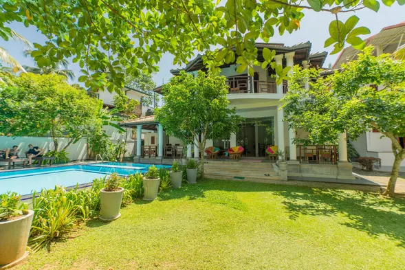 Experience a family-friendly villa with an outdoor pool, complimentary breakfast, and unique dining options in Unawatuna.