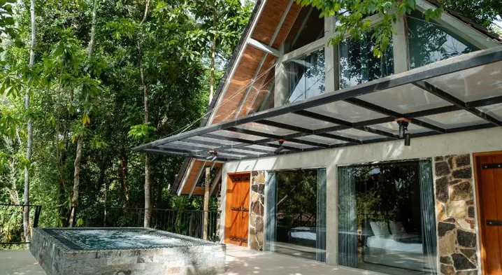 Experience a family-friendly villa with an outdoor pool, complimentary breakfast, and unique dining options in Unawatuna.
