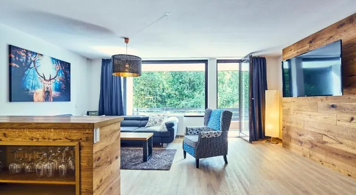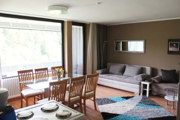 Modern apartment with indoor pool, sauna, and free Wi-Fi, located near Winterberg's bike park and ski areas.