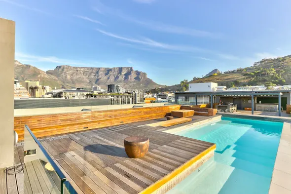 Luxurious apartment in Green Point with ocean and mountain views, daily servicing, and air conditioning.