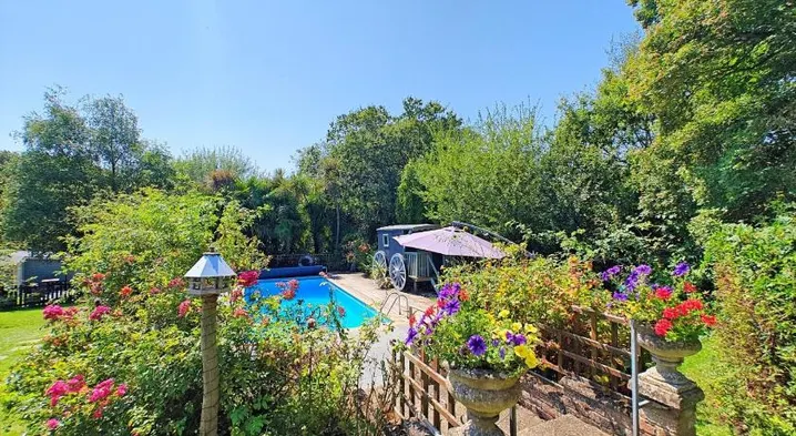 'Monktonmead Lodge' in secluded setting, with private indoor pool.