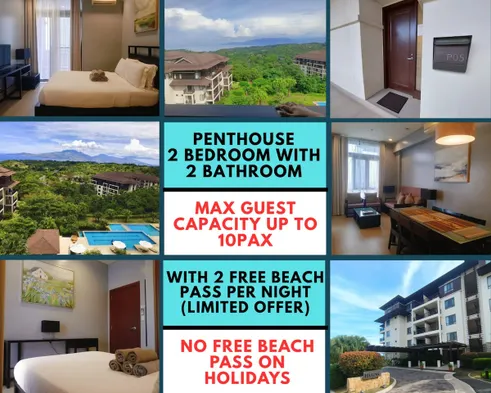 Luxury apartment with swimming pool, spa, private beach, and free parking for a relaxing stay in Morong, Philippines.