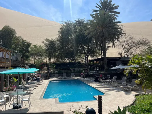 Enjoy a relaxing stay with an outdoor pool, fitness center, and on-site dining in Ica's scenic Huacachina Oasis.