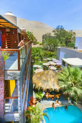 Adults-only hostel with an outdoor pool, rooftop terrace, and a restaurant near Huacachina Oasis.