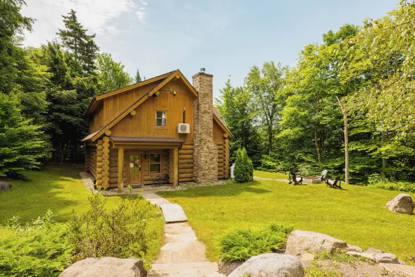 Luxury lakefront Log Home Near St Sauveur with private hot tub