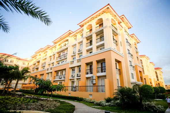 Modern aparthotel with swimming pool, fitness center, and on-site dining in Cebu City.