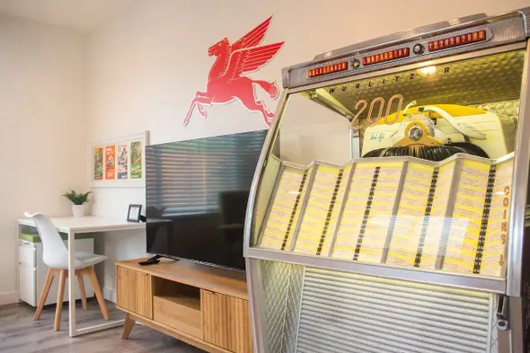ᗌᗌᗌ King bed, A/C, Jukebox, Fresh & new 1br