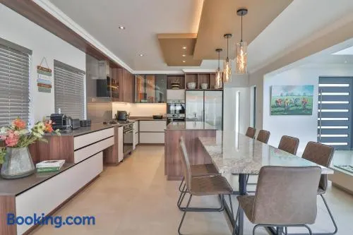 Relax in comfort and style with a swimming pool, aircons and braai room