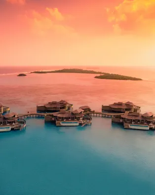 Luxury resort with spa, swimming pool, and 7 restaurants, located steps from the stunning Ari Atoll beach.
