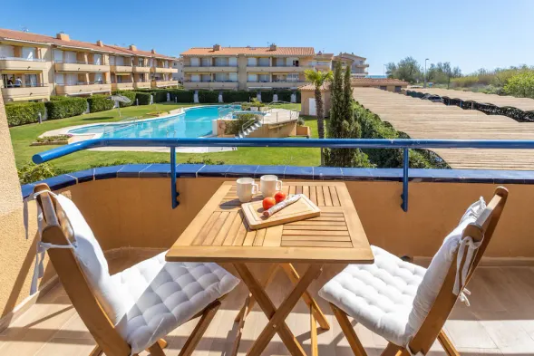 Enjoy a family-friendly stay with an outdoor pool and dining options just a short walk from Estarit Beach.