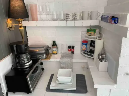 Fully furnished apartment with air conditioning, stocked kitchen, and just a short block from the beach.
