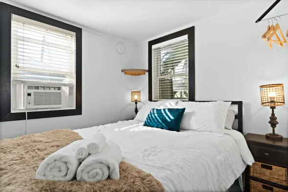 Cozy one-bedroom cottage with air conditioning, community pool access, and just a minute from the beach.