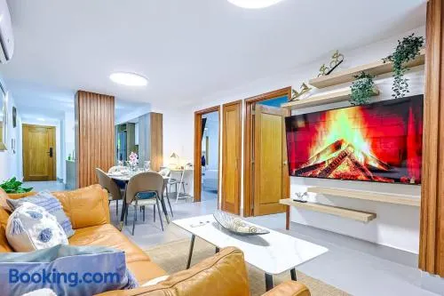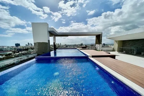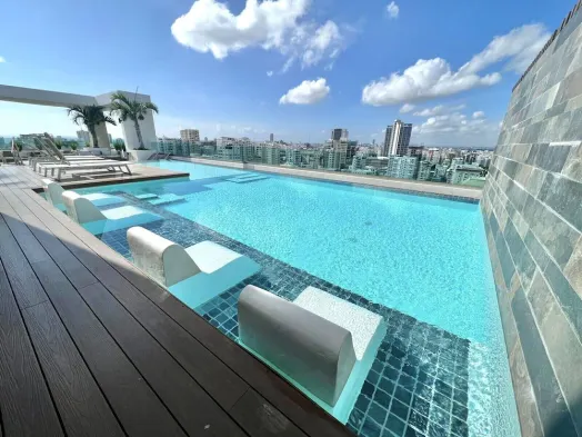 Air-conditioned apartment with a kitchen, swimming pool, and free parking in Santo Domingo's Piantini neighborhood.