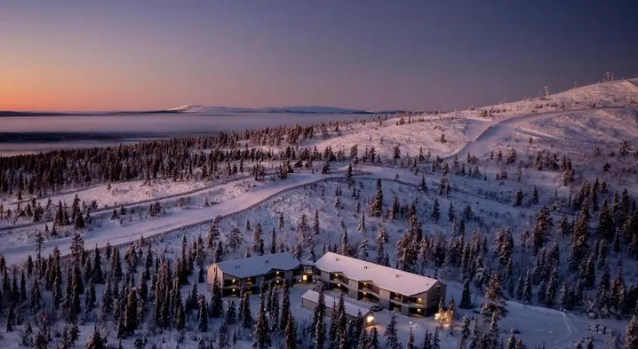 Luxury hotel with ski-in/ski-out access, sauna, fitness center, and two restaurants near Levi Ski Resort.