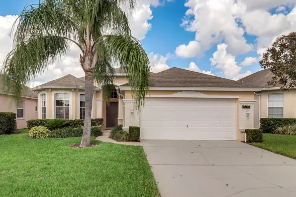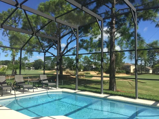 Luxury villa with private pool, golf course views, and spacious family areas in Haines City, Florida.