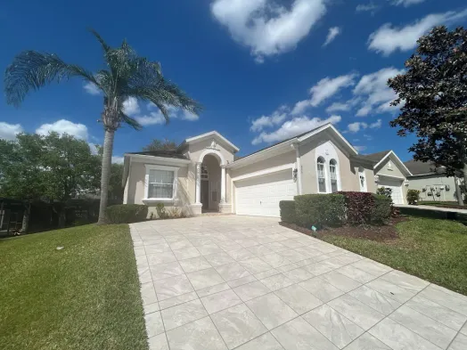 Luxury villa with private pool, golf course views, and spacious family areas in Haines City, Florida.