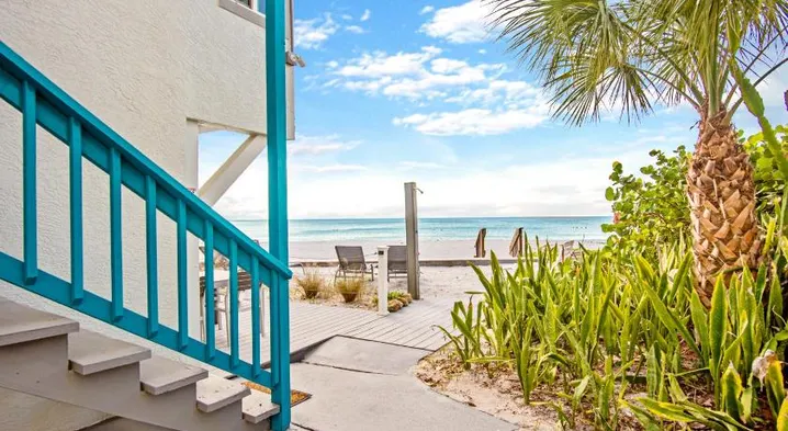 Beachfront apartment with private beach access, family rooms, and free Wi-Fi in Englewood, Florida.