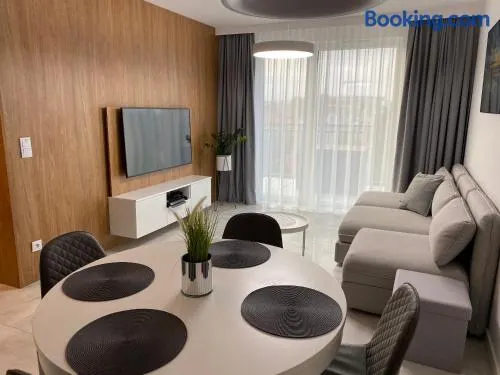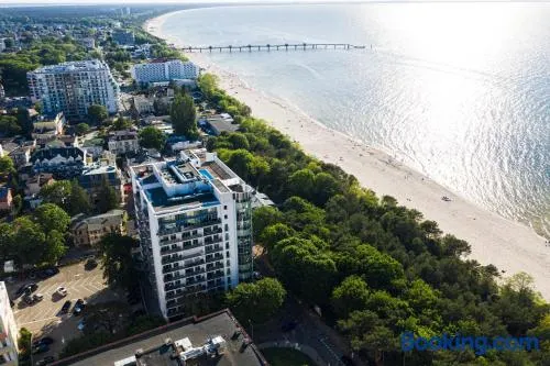 Relax at this beach aparthotel with a private beach, spa services, and two hot tubs just steps from Miedzyzdroje Beach.