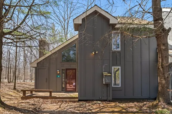 Cozy loft with a pond view, wood-burning fireplace, and ski-in/ski-out access at Jack Frost Mountain.