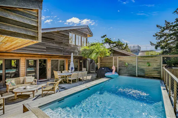 A slice of paradise 1 block to beach with private pool, 3 decks, modern interior